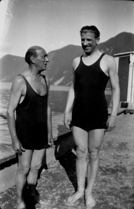 Arnold Schoenberg and Winfried Zillig rocking one piece bathing suits.