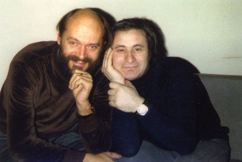 Arvo Pärt and Alfred Schnittke reenact their high school yearbook photos.