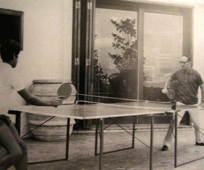 Sergei Prokofiev playing chess against violinist David Oistrakh with violinist Liza Gilels watching.