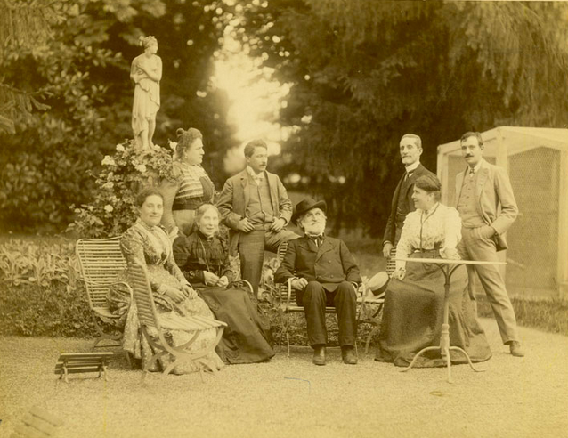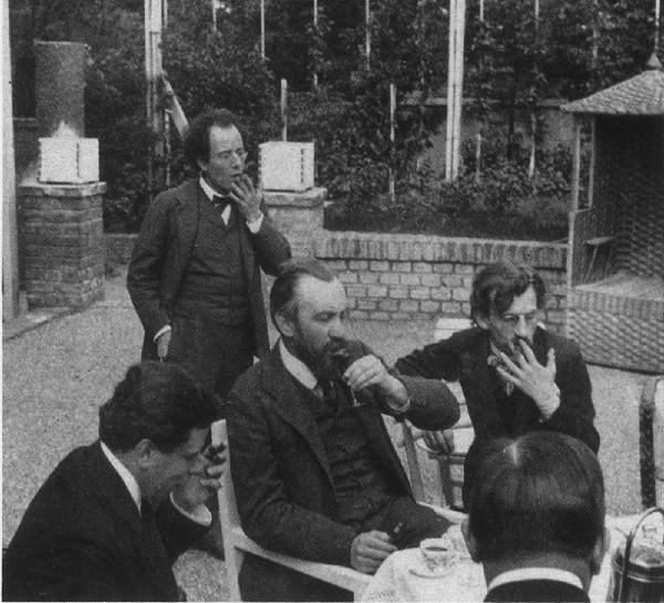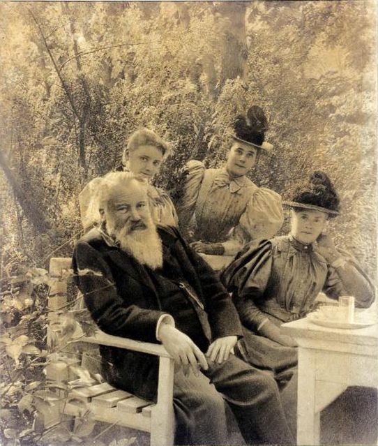 Johannes Brahms having a picnic with violinist Marie Soldat and a couple other ladies.