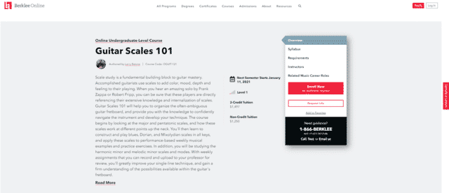Berklee Online offers a complete 101 course for guitar scales as well. The course starts from the very fundamentals and will teach you everything from the start to the very end. Different topics are divided into multiple lessons, making it more accessible and easier to learn for you.