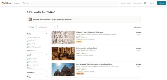 You can find lots of courses on Latin listed on Udemy.com that will enable you to have all the assistance and insight you need to learn the language. These courses range from basic Latin courses to some highly advanced courses on grammar, sentence structure, and more.
