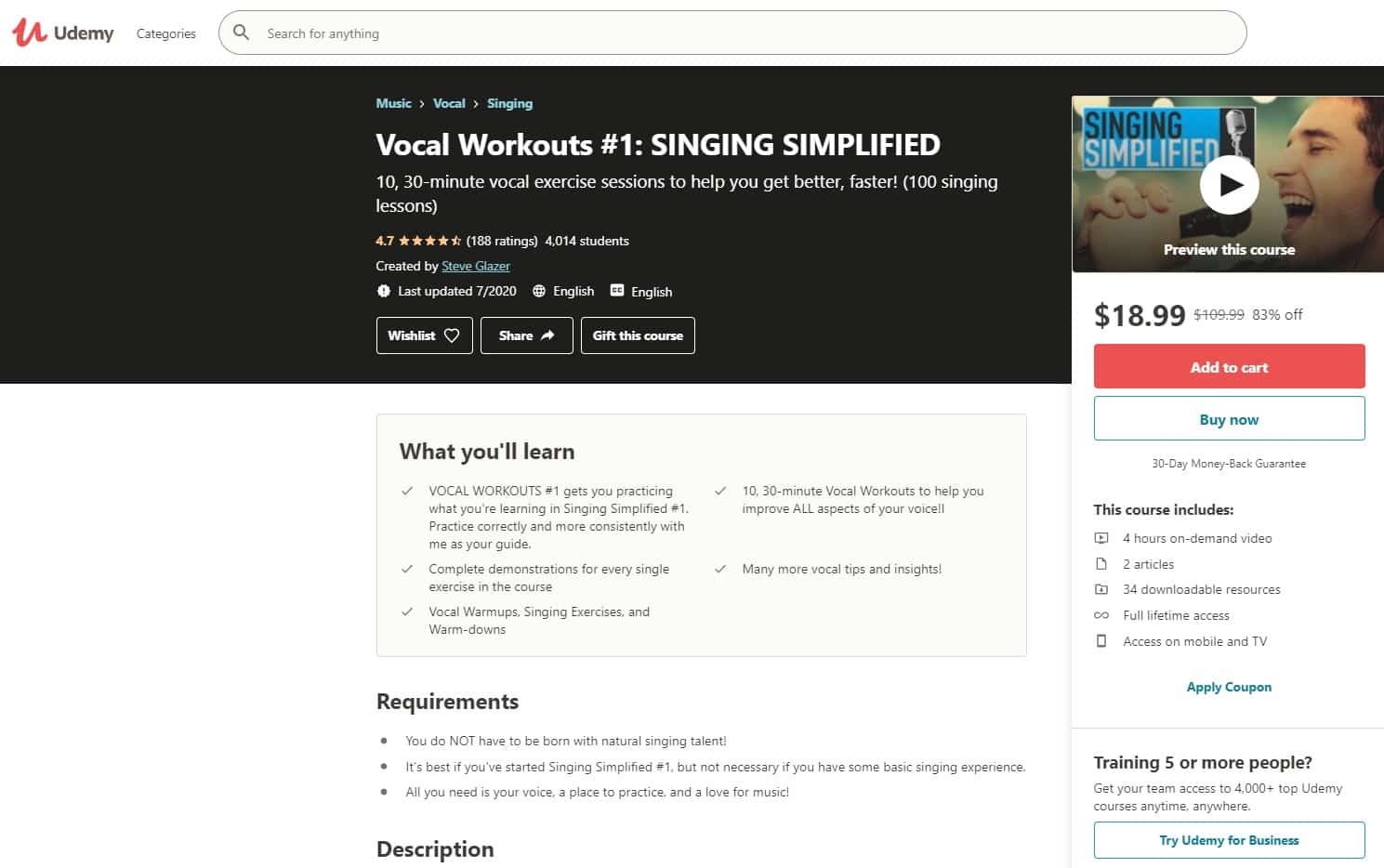 10) Udemy: Vocal Workouts #1: Singing Simplified